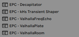 EPC Devices are a series of Max for Live devices designed to use VST plugins as if they were native Live devices. The main goal is to work with VST plugins directly from the track’s effects section, without having to open and close floating windows. Or at least minimizing the number of times they need to be displayed. This results in a more productive workflow.